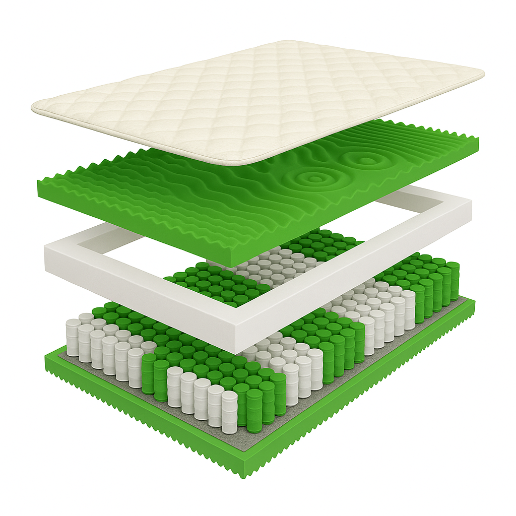 Sprężyny kieszeniowe to fundament komfortowego i trwałego materaca. Każda sprężyna jest zamknięta w oddzielnej kieszonce z elastycznej tkaniny, co zapewnia: